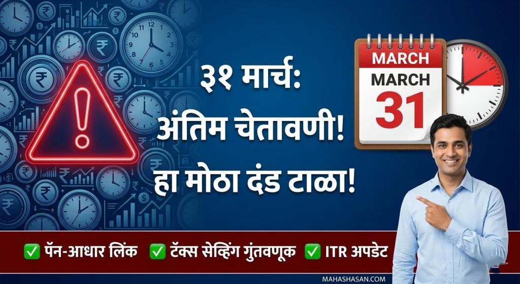 गणेशरावांसारखी तुमची ही अवस्था होऊ नये, म्हणून हा लेख शेवटपर्यंत वाचा. आज २६ मार्च २०२६ आहे. आपल्या हातात आता फक्त ५ दिवस उरले आहेत. ३१ मार्च ही केवळ कॅलेंडरवरील तारीख नाही, तर ती आर्थिक वर्ष २०२५-२६ च्या समाप्तीची खूण आहे. या तारखेनंतर तुम्ही केलेल्या गुंतवणुकीचा फायदा तुम्हाला या वर्षाच्या टॅक्समध्ये मिळणार नाही. या लेखात आपण पाहणार आहोत की, अशा कोणत्या गोष्टी आहेत ज्या तुम्ही ३१ मार्चच्या रात्री १२ वाजेपूर्वी पूर्ण केल्याच पाहिजेत.